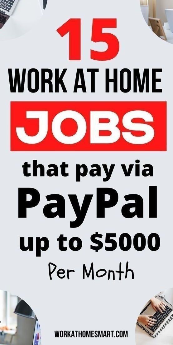 15 Work at home jobs that pay via pay pal up tp $5,000 per month.