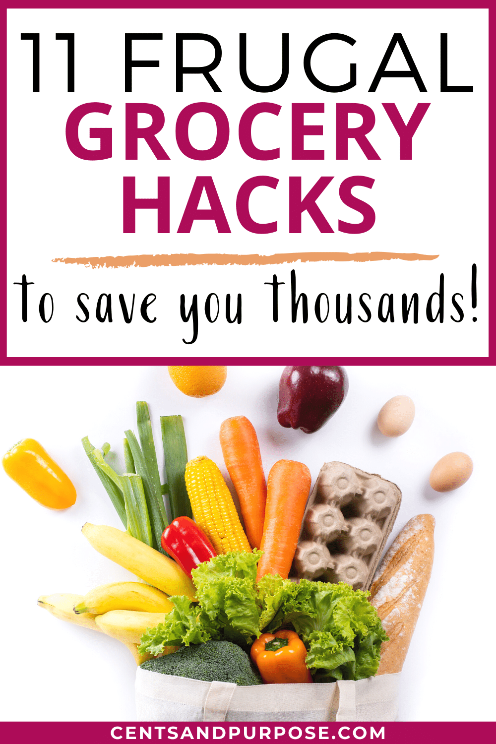 Food is the biggest spending category for most people but it’s easy to cut your food budget in half with frugal living hacks! Click through to read these 11 money saving tips that will save you thousands of dollars on groceries every year! #frugalliving #grocerybudget #