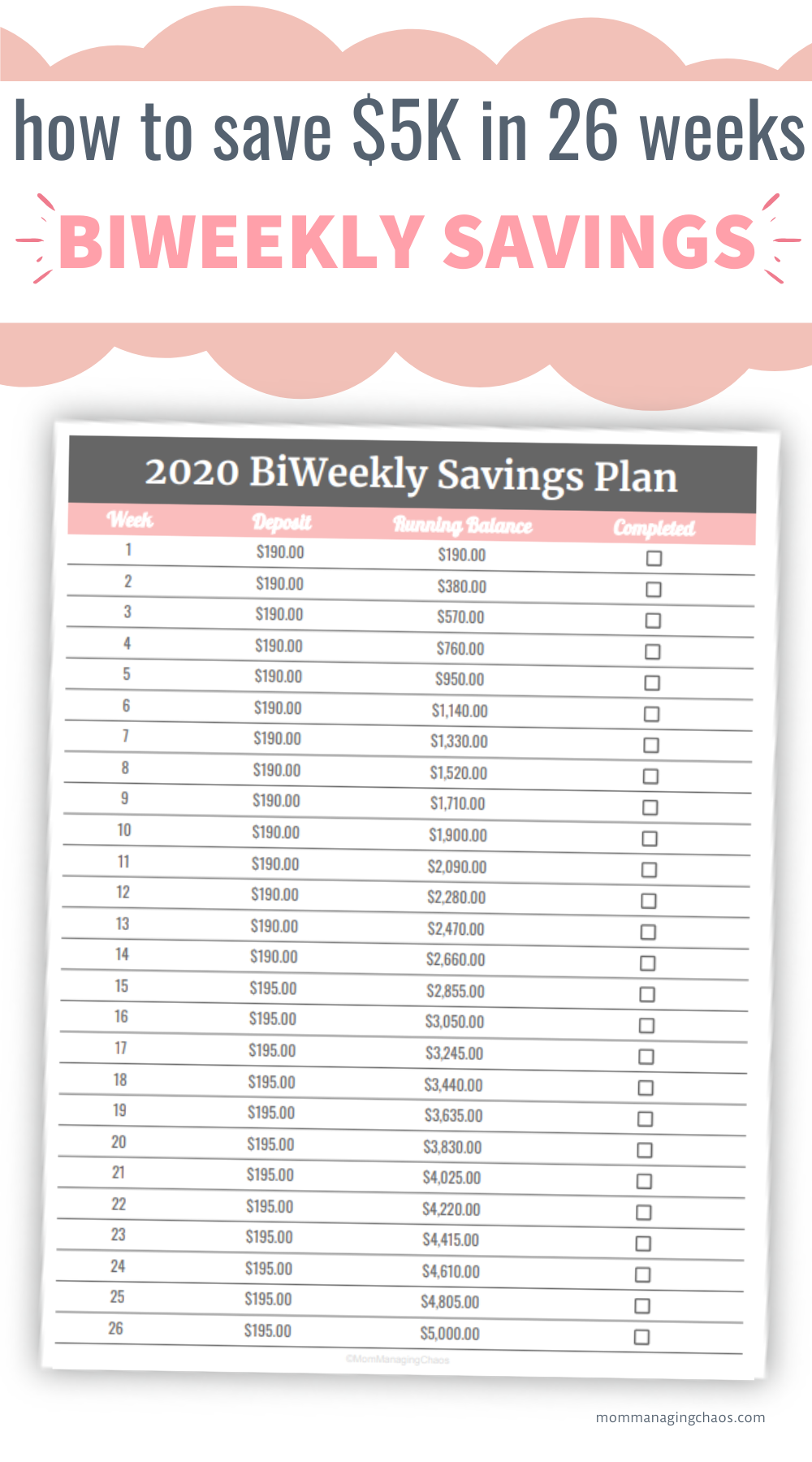 Home EasyMoneySaver How to Save $5000 in 26 Weeks | Biweekly Savings Plan 3 years ago 3 years ago How to Save $5000 in 26 Weeks | Biweekly Savings Plan by admin 0 Post PaginationPrevious PostPreviousNext PostNext Like it? Share with your friends! 0